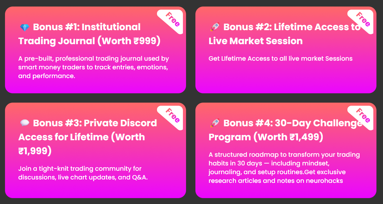 “I’ve spent over ₹50,000 on random trading courses before — none compared to the clarity this one gives. The Smart Money Concepts are taught in such a visual, simple way that anyone can grasp. I’m finally consistent and profitable for the first time in 2 years.”